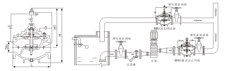 百鋼閥門集團(tuán)生產(chǎn)銷售的500X泄壓/持壓閥由主閥、泄壓/持壓導(dǎo)閥針閥、球閥、微形過濾器和壓力表組成水力控制接管系統(tǒng)。利用水力自動操作,即可以作泄壓閥用又可作持壓閥用。作泄壓閥用時,可維持供水路壓力在設(shè)定的安全值之下;做持壓閥用,可維持主閥上游水壓在設(shè)定值之上,保持主閥上游供水壓力。