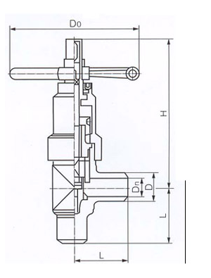 J6B7Y角式節(jié)流截止閥外形及連接尺寸