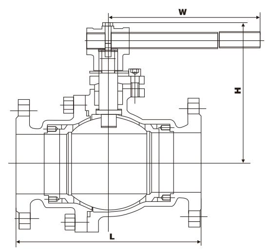 Q347F不銹鋼蝸輪固定球閥規(guī)格主要尺寸:
