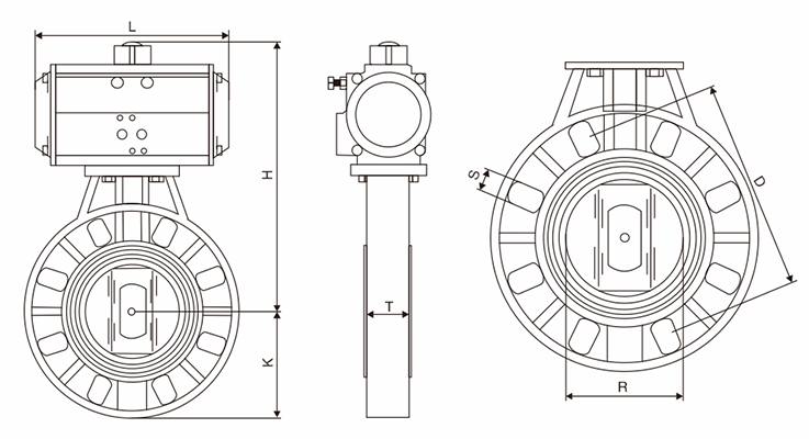三、D671X-10U氣動UPVC蝶閥 主要外型尺寸